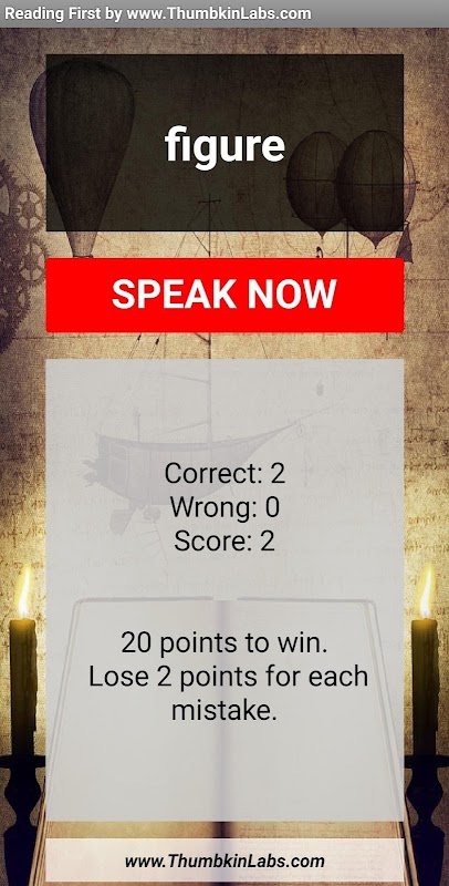 This app is created to improve reading skills. Words will be written on the app and you will read out loud the word. Using google voice recognition technology, the app will check your voice and will compare against the written word. If you get the word correctly then you will get a corresponding point and proceed to the next word.