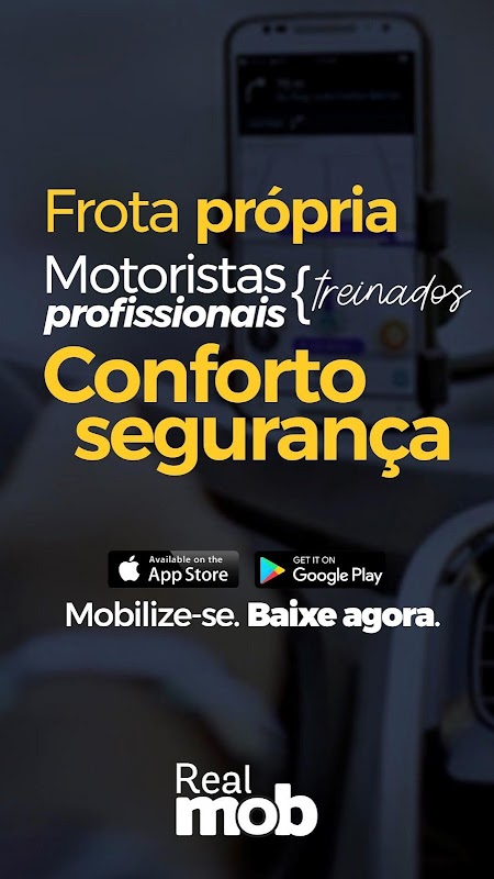 রিয়েল মোব একটি পরিবহন অ্যাপ্লিকেশন যা সর্বোত্তম অভিজ্ঞতা দেয়। এটি গতিশীলতার চাহিদা পূরণের জন্য তৈরি করা হয়েছিল এবং তার নিজস্ব বহর রয়েছে, একটি প্রতিরক্ষামূলক ড্রাইভিং কোর্স এবং ব্যক্তিগতকৃত পরিষেবা সহ পেশাদার ড্রাইভার রয়েছে। পরিষেবার বিধানে সর্বাধিক সুরক্ষা নিশ্চিত করার জন্য এই সমস্ত।