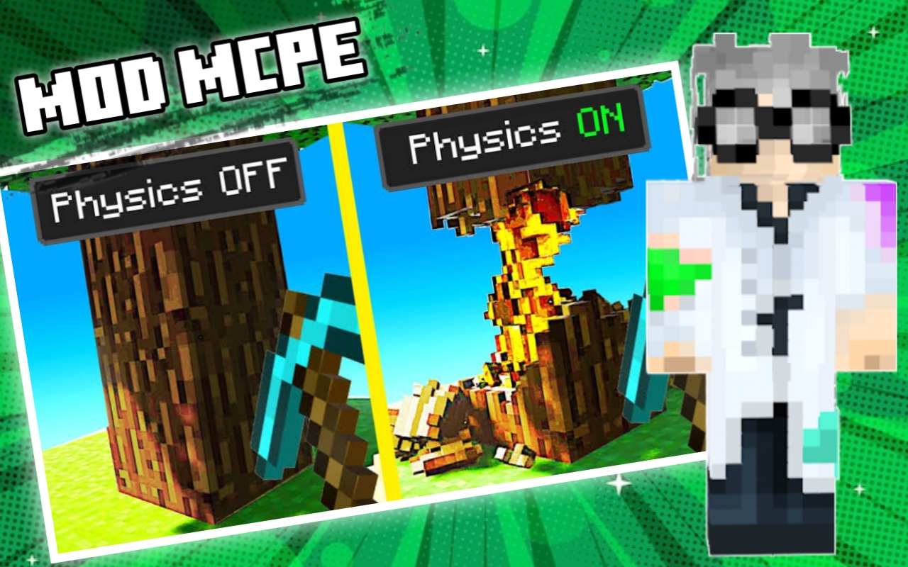 improve your playthrough with a physics mod for Minecraft. If you are tired of the monotonous behavior of mobs, then by all means download Physics Mod for MCPE. This assembly includes a variety of addons in Physics Mod Minecraft app, such as item physics addon for lovers of collecting items. Realistic physics mod for Minecraft will appeal to those who want to get even more positive emotions from the game!