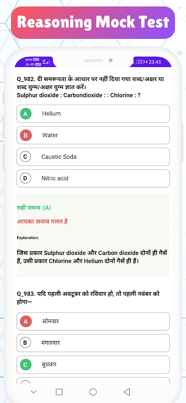 হিন্দিতে যুক্তির মক টেস্ট অ্যাপ,