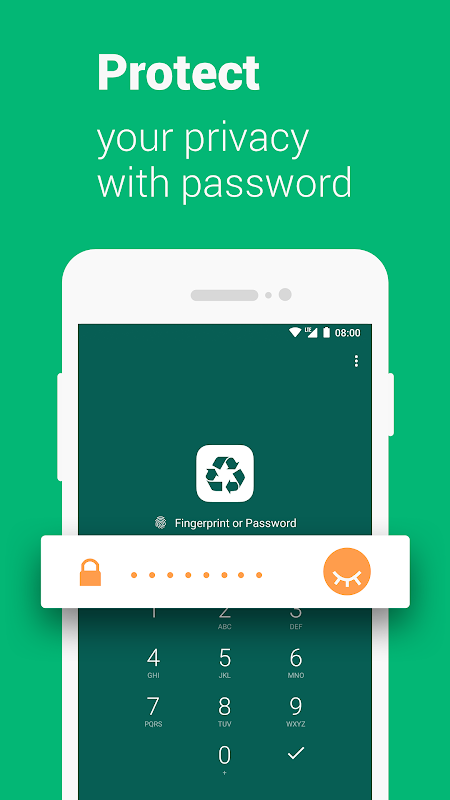 পুনরুদ্ধারের মাধ্যমে আবর্জনায় মুছে ফেলা ছবি, ভিডিও বা দস্তাবেজগুলি ব্যক্তিগত হতে পারে এবং আপনি অন্যরা দেখতে চান না। রিসাইকেল মাস্টার আপনাকে অ্যাপ্লিকেশনটিতে একটি পাসওয়ার্ড যুক্ত করতে দেয়। বাহ্যিক দর্শকদের অপসারণ করা সামগ্রীটি দেখার আগে পাসওয়ার্ড জানতে হবে।