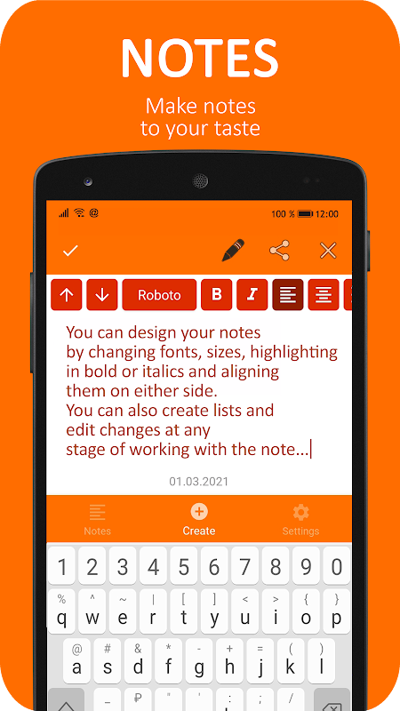- এবং অবশ্যই প্রধান ফাংশন: পাসওয়ার্ড সহ নোট হল অননুমোদিত ব্যক্তিদের থেকে আপনার সমস্ত পাঠ্য রক্ষা করা। তালিকার পাসওয়ার্ডটি আপনি ব্যক্তিগতভাবে সেট করেছেন এবং আপনি ছাড়া অন্য কেউ এটি জানতে পারবেন না। এটি একটি পাসওয়ার্ড লিখতে খুব সুবিধাজনক, যেহেতু এটি একটি পিন কোড আকারে তৈরি করা হয়।