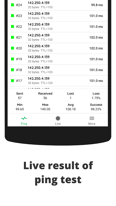 আপনি আপনার পিং পরীক্ষার রিয়েল-টাইম ফলাফল পেতে পারেন। এই ফলাফলে নিম্নলিখিত জিনিসগুলি রয়েছে: