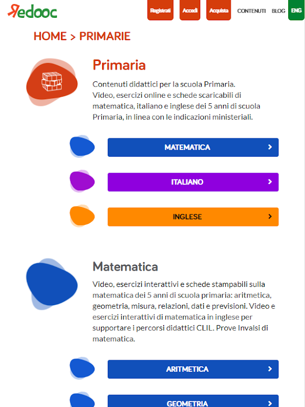 অনলাইন গেমের মতো সমস্ত মূল বিদ্যালয়ের বিষয়গুলি (গণিত, বিজ্ঞান, পদার্থবিজ্ঞান, ইতালিয়ান, সাহিত্য, ইতিহাস এবং দর্শন, ইংরেজি, ইনভালসি, আর্থিক শিক্ষা, নাগরিক, গেমস) শিখতে রেডোক হ'ল ডিজিটাল শিক্ষণ প্ল্যাটফর্ম: