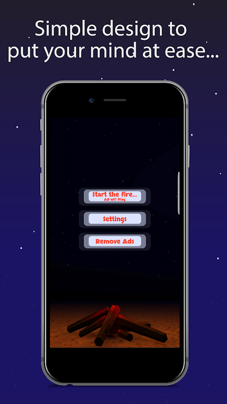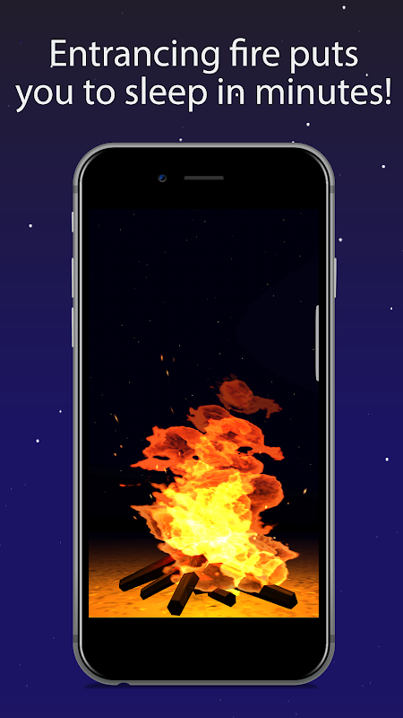 The app includes a burning campfire visual accompanied with your choice of outdoor camping sounds