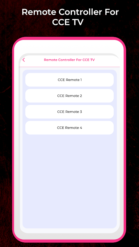 এই অ্যাপের মাধ্যমে মোবাইলকে CCE রিমোট কন্ট্রোলে রূপান্তর করার একটি স্মার্ট পদ্ধতি।