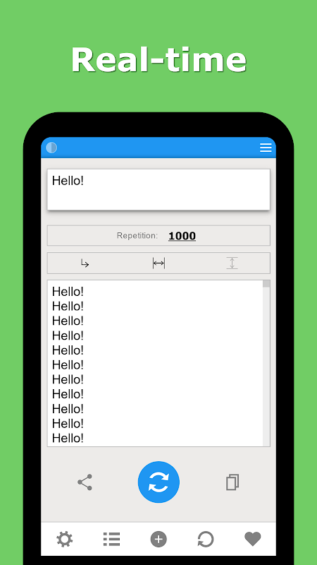 এই অ্যাপ্লিকেশন আপনাকে একটি পুনরাবৃত্তি পাঠ্য বার্তা তৈরি করতে সাহায্য করে। পুনরাবৃত্তি পাঠ্য একটি দুর্দান্ত অ্যাপ্লিকেশন এবং ব্যবহার করা সহজ।