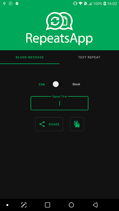 এই অ্যাপ্লিকেশনটি বারবার বা খালি হোয়াটসঅ্যাপ বার্তা প্রেরণ করা সম্ভব করে possible এছাড়াও, আপনি উত্পন্ন বার্তা অনুলিপি করতে এবং যে কোনও জায়গায় পেস্ট করতে পারেন।
