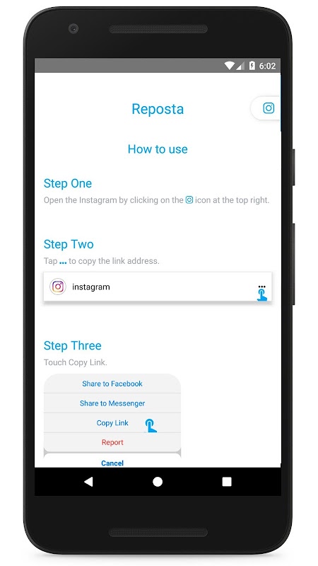 Reposta allows you to send the posting you see on the instagram to your account
