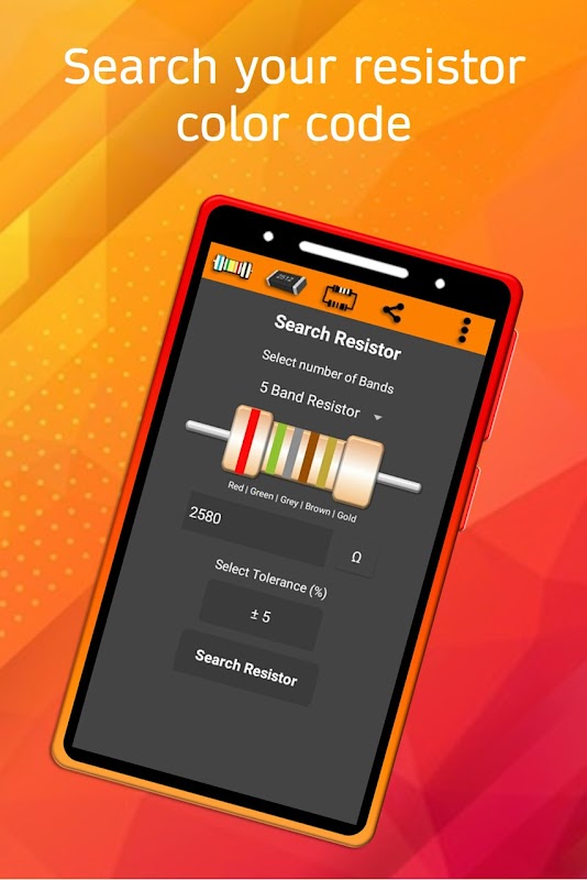 - সংখ্যার প্রতিরোধকের মান দিয়ে রঙ কোড অনুসন্ধান বিকল্পটি সমর্থিত। - - রঙ কোড চিত্র এবং পাঠ্য যা সহজে ভাগ করা যায় ফলাফল ফলাফল।