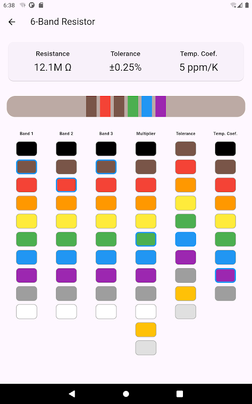 স্ট্যান্ডার্ড কালার-কোডিং সিস্টেম ব্যবহার করে প্রতিরোধকের মান গণনা করার জন্য একটি সহজ রেফারেন্স অ্যাপ। আরডুইনো, রাস্পবেরি পাই বা যেকোনো ইলেকট্রনিক প্রকল্পের সাথে কাজ করা নির্মাতা, প্রকৌশলী, ছাত্র এবং শখের লোকদের জন্য উপযুক্ত।