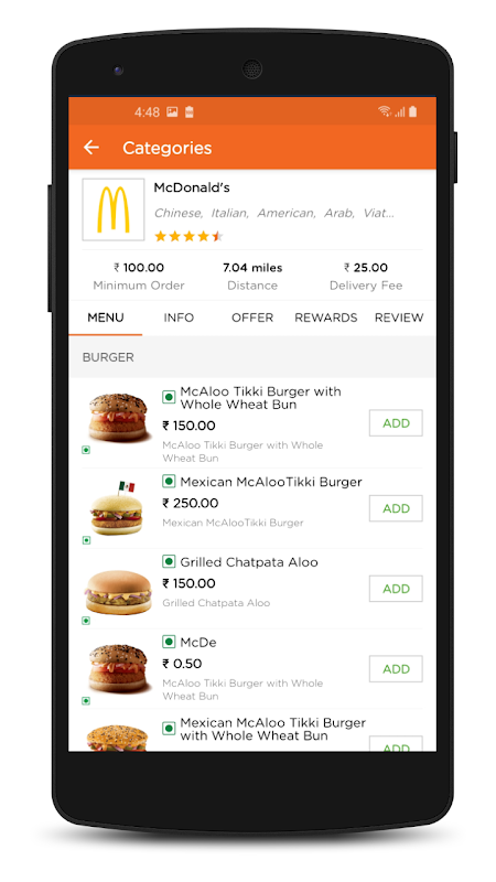• Browse Menu: Browse the menu of any restaurant, see prices and other details.