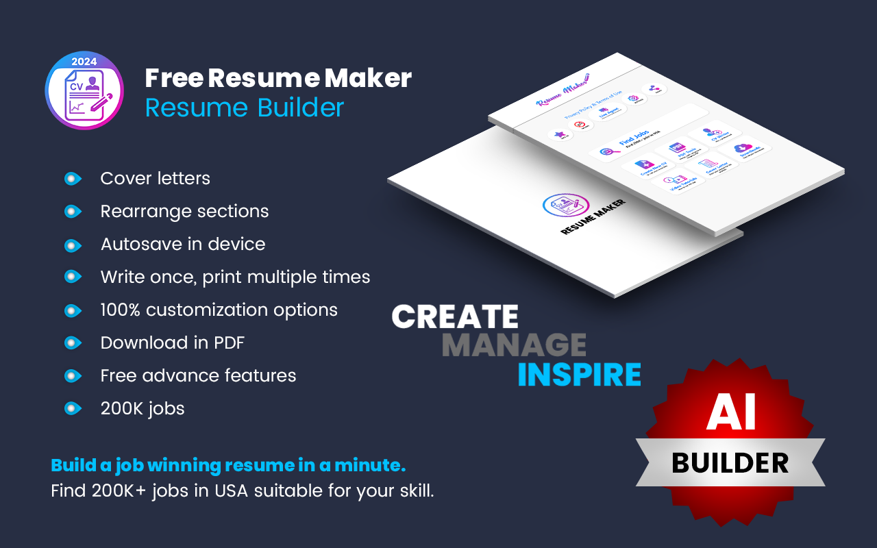 রিজিউম মেকার অ্যাপ, সিভি মেকার (কারিকুলাম ভিটা) এবং রিজিউম বিল্ডার এবং কভার লেটার