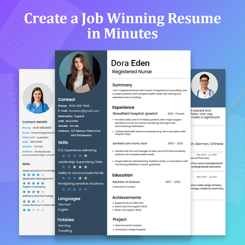 আপনি যখন কোনো চাকরির জন্য আবেদন করেন বা ইন্টারভিউয়ের জন্য যান তখন চাকরির জন্য একটি নিখুঁত জীবনবৃত্তান্ত ফরম্যাট বাধ্যতামূলক। রেজিউম মেকার এবং রেজিউম জেনারেটর অ্যাপ আপনাকে এই লক্ষ্য অর্জনে অনেক সাহায্য করবে।