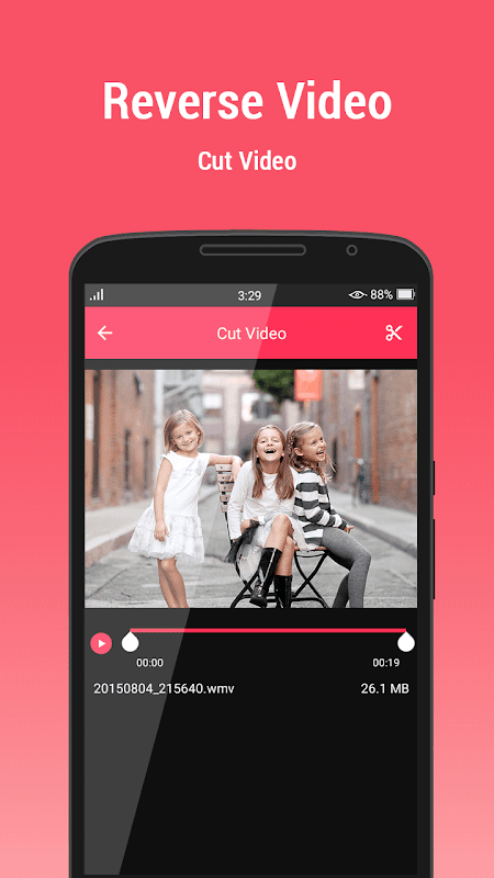 2. Reverse video provide facility for cut video from start point to end point with size option.