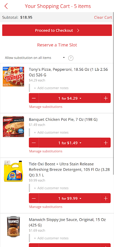 আপনার অতীতের আদেশ ব্যবহার করুন দ্রুত নির্বাচন করতে এবং আপনার মুদিখানা অর্ডার, আপনার ফেভারিটে ওঠানামা, ইতিহাস অর্ডার এবং আইটেম সুপারিশ করেন। শুধু সাপ্তাহিক বিজ্ঞাপন বা সমগ্র দোকান ব্রাউজ পিক বা প্রসবের জন্য আপনার আইটেম শৃঙ্খলা নির্বাচন যেখানে পাওয়া যায়।