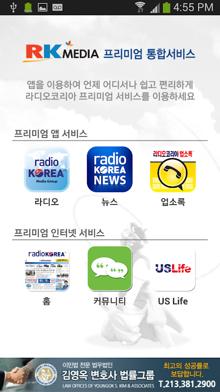 আরকে মিডিয়া প্রিমিয়াম ইন্টিগ্রেশন সেবা কোরিয়া রেডিও অ্যাপ কোরিয়া মোবাইল রেডিও RadioKorea অ্যাপ RadioKorea মোবাইল