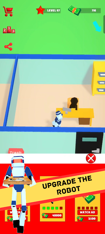 একটি একক রোবট শেফ এবং একটি মৌলিক চুলা দিয়ে ছোট শুরু করুন। ক্ষুধার্ত গ্রাহকরা আপনার পিজ্জার জন্য লাইনে দাঁড়িয়েছে দেখুন। আরও রোবট সহকারী নিয়োগ করুন, নতুন খাদ্য স্টেশন যোগ করুন এবং সম্পূর্ণ ক্যাফে স্বয়ংক্রিয় করুন। প্রতিটি রোবটের অনন্য দক্ষতা রয়েছে — দ্রুত রান্না করা, ভাল পরিবেশন করা, বা আরও স্মার্ট নগদ হ্যান্ডলিং। চূড়ান্ত রান্নাঘর কর্মপ্রবাহ তৈরি করতে তাদের একত্রিত করুন।