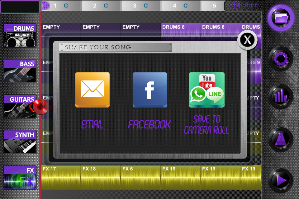 · To share your own Rock Machine compositions in Facebook, Whatsapp, Line, Youtube, E-Mail, etc...