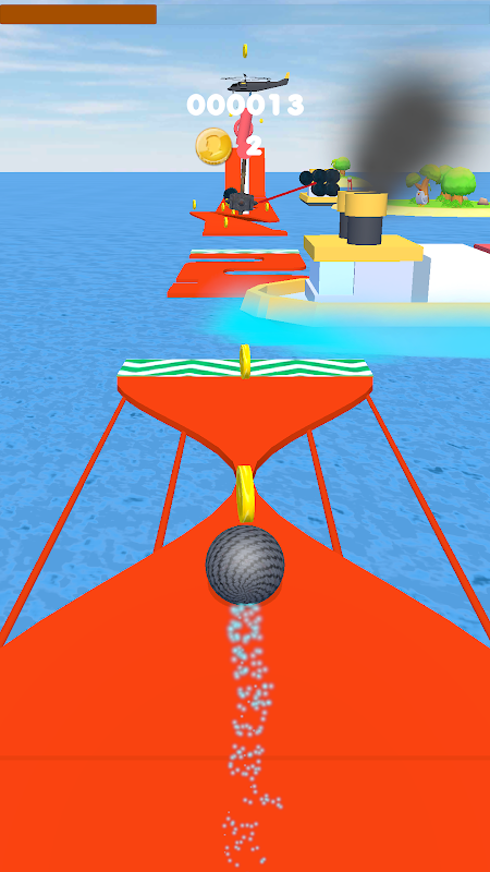 Drag the ball left or right to avoid all obstacles and try not to fall to water.