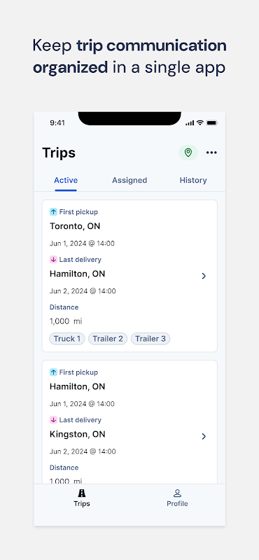 • ট্রিপ ম্যানেজমেন্ট - বিশদ বিবরণ, কাজ এবং অ্যাপয়েন্টমেন্টের সময় এক নজরে দেখুন