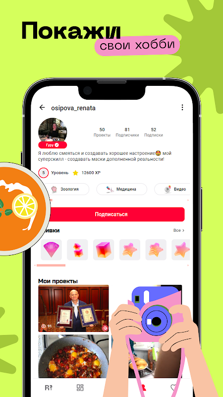 টাস্কটি সম্পূর্ণ করুন, ক্যামেরা দিয়ে শুট করুন এবং রাউন্ডে ফলাফল ভাগ করুন। প্রতিটি সম্পূর্ণ চ্যালেঞ্জের জন্য আপনি একটি নির্দিষ্ট পরিমাণ অভিজ্ঞতা পাবেন, এবং দক্ষতা - অর্জনে অভিজ্ঞতা সঞ্চয়ের জন্য। অভিজ্ঞতা সঞ্চয় করুন এবং শীর্ষ ব্যবহারকারীদের মধ্যে প্রথম হন। আমাদের সৃজনশীল সম্প্রদায়ের কাছে আপনার সৃজনশীলতা দেখান।