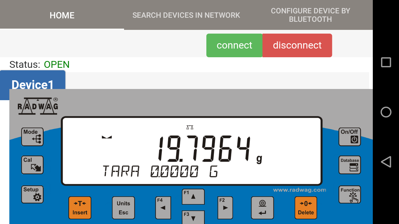 Aplikacja stworzona do współpracy poprzez RPanel Box z wagami serii R.