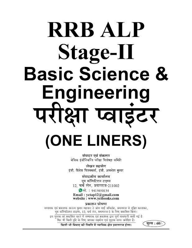 YCT বিশেষজ্ঞ দল RRB ALP স্টেজ II (বেসিক সায়েন্স অ্যান্ড ইঞ্জিনিয়ারিং ড্রয়িং) পরীক্ষার পয়েন্টার নামে একটি সেরা বই চালু করেছে