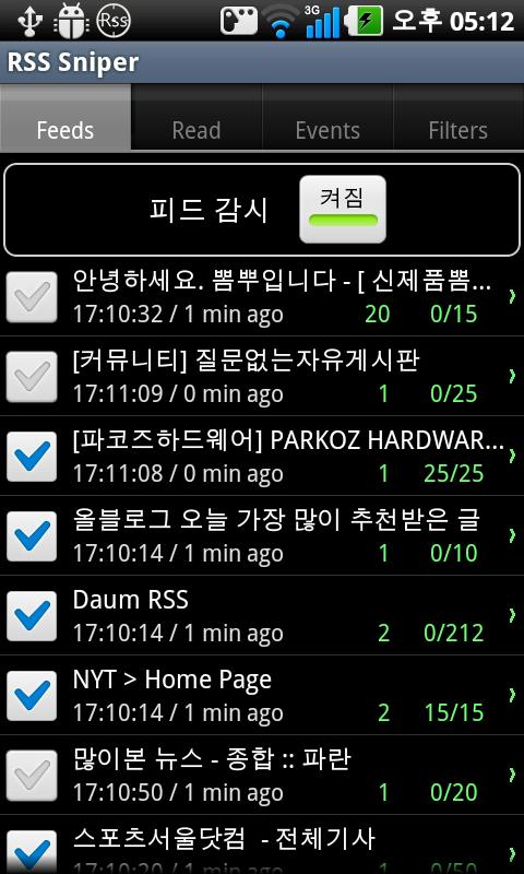 * RSS스나이퍼는 RSS 피드를 감시하며 새로운 글이 등록될 경우 사용자에게 알려주는 어플입니다.