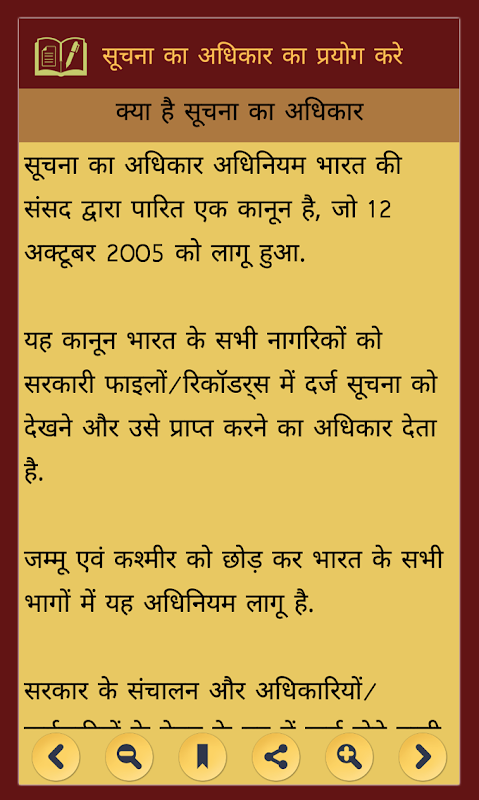 RTI in Hindi ( सुचना का अधिकार ) এর পুরানো সংস্করণ