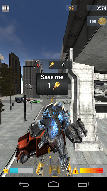 The robot was being transported in a truck to the other side of town, for a military warehouse where you would add weapons so it could fight the aliens. But during the transport truck was hit and exploded, luckily the robot managed to escape unharmed.