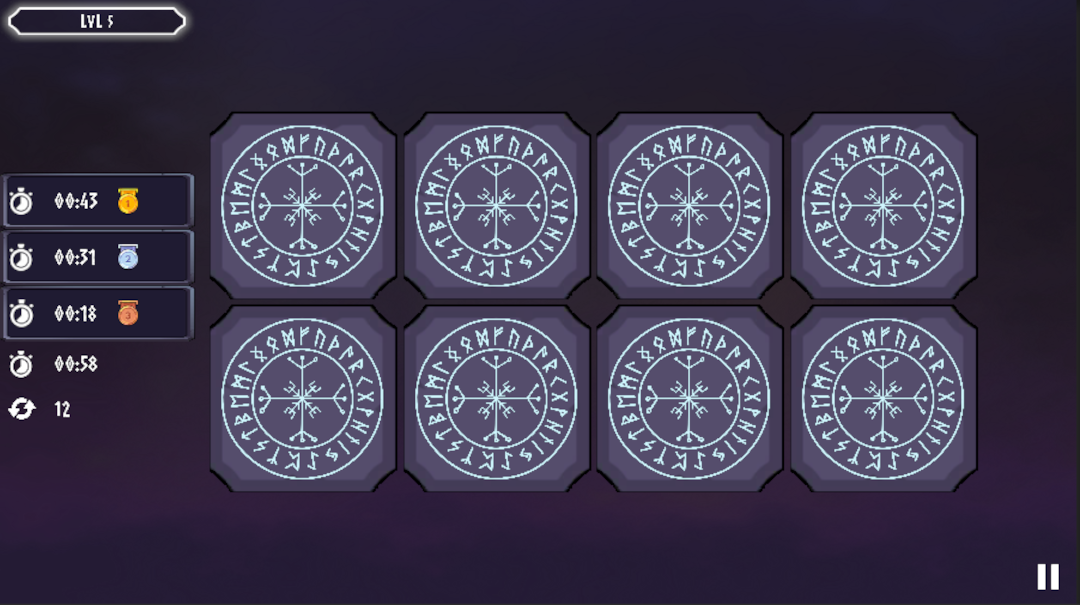 - রহস্যময় রুন প্রতীক সহ মেমরি গেমপ্লে শিথিল।