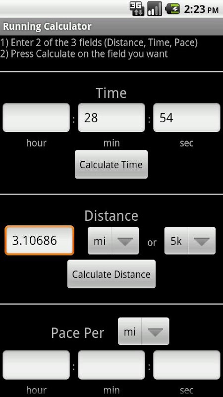 A simple pace/distance/time calculator for runners. Free and contains no ads.