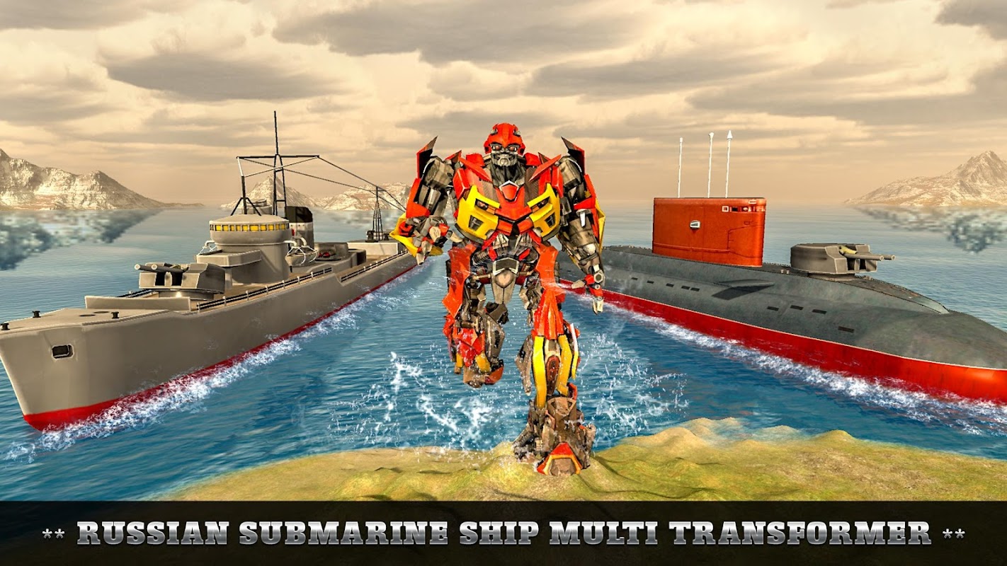 Play as russian submarine futuristic multi robot in WW2 warship battle war game