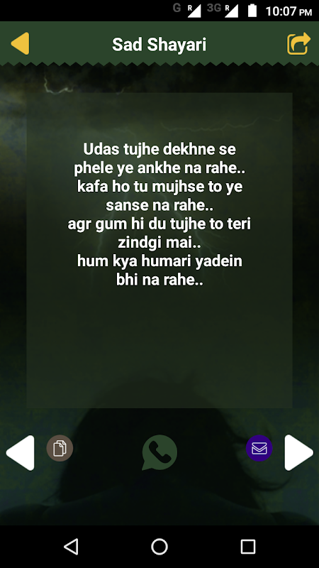 Sad Shayari is the best collection of hindi and Urdu Dard shayari. You can share your sad feelings by this appliction. Share your feelings with your friends and downloads and upload in all social media.