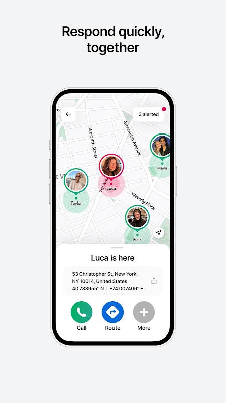 বন্ধুবান্ধব, পরিবার এবং পেশাদার সাহায্যকারীরা একটি বোতাম চাপলেই পৌঁছানো যায়। জরুরী পরিস্থিতিতে, তারা এখনই জানতে পারবে কার সাহায্য প্রয়োজন এবং কোথায় এটি প্রয়োজন।
