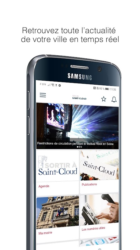 সেন্ট-ক্লাউড শহরের অ্যাপ্লিকেশনটি নিউজ, ইভেন্টের কার্যসূচি, টাউন হলটির পরিষেবার দরকারী নম্বর, রিয়েল টাইমে বিজ্ঞপ্তি এবং আরও অনেক কিছু সরবরাহ করে: