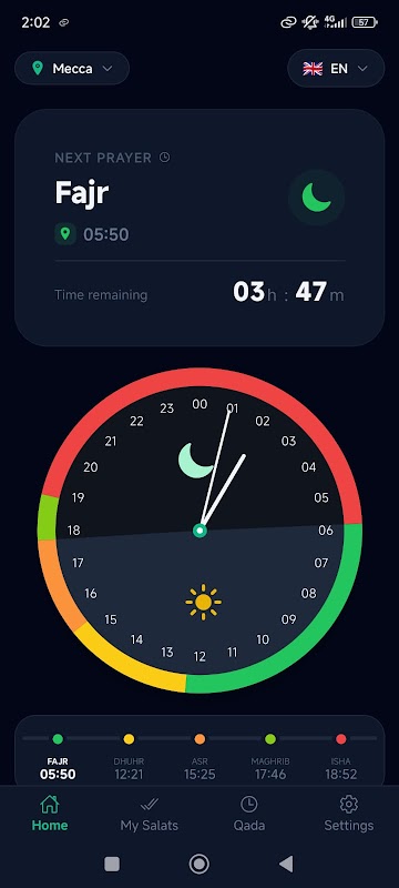 সঠিক দৈনিক নামাজের সময় (ফজর, যোহর, আসর, মাগরিব, ইশা) পান, স্পষ্ট কাউন্টডাউনের মাধ্যমে পরবর্তী কী তা দেখুন এবং একটি মাত্র ট্যাপ দিয়ে আপনার দৈনিক সমাপ্তি ট্র্যাক করুন।