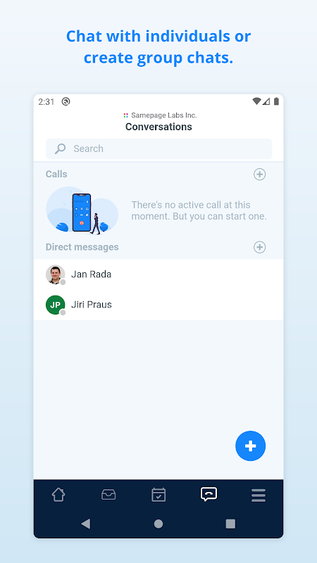 একটি পৃথক চ্যাট এবং ভিডিও কলিং টুলের জন্য অর্থ প্রদান করবেন না। সেমপেজ চ্যাট, সরাসরি মেসেজিং এবং বিনামূল্যে ভিডিও কলিংয়ের সাথে আসে। প্রসঙ্গ এবং কথোপকথন একসাথে রাখার জন্য তারা আমাদের সহযোগী ক্যানভাসের সাথে সুন্দরভাবে সংহত হয়েছে। Samepage আপনাকে একটি সম্পূর্ণ অল-ইন-ওয়ান সহযোগিতা সরঞ্জাম প্রদান করে।