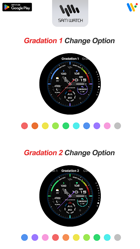 এই ঘড়ির মুখটি SamWatch এনালগ লাইনআপের সাথে মিলে যায়।