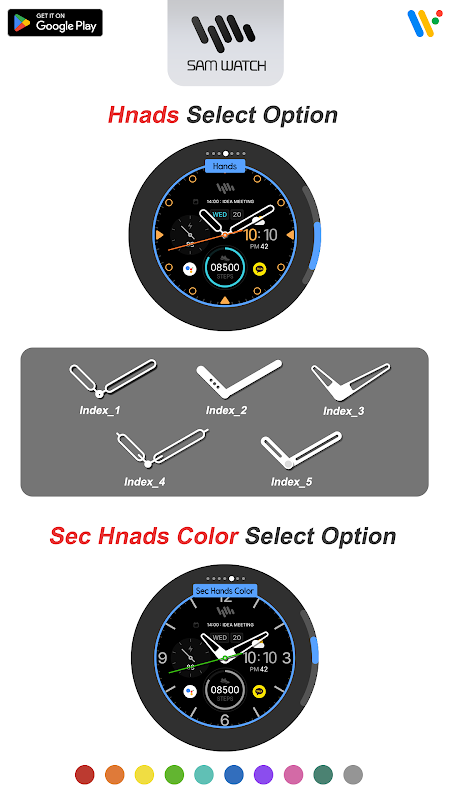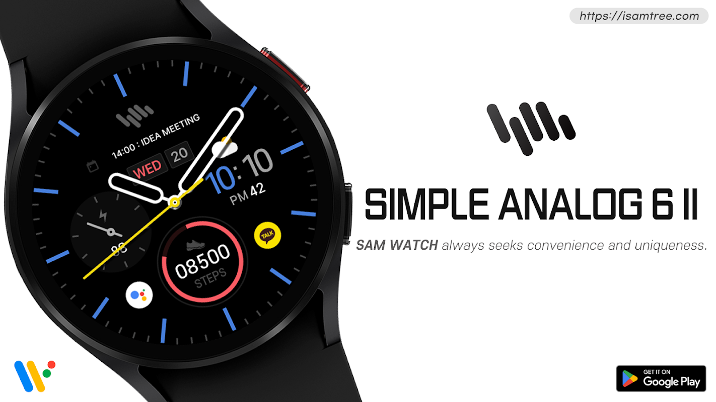 এই ঘড়ির মুখটি SamWatch সিম্পল এনালগ লাইনআপের সাথে মিলে যায়।