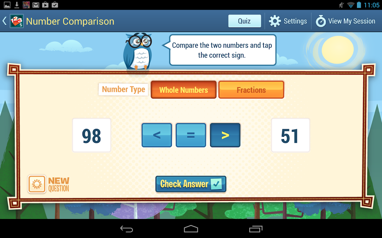 Number Comparison – Compare numbers (both whole numbers and fractions).