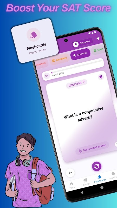 হাজার হাজার অনুশীলন প্রশ্ন, ইন্টারেক্টিভ ফ্ল্যাশকার্ড এবং বাস্তবসম্মত মক টেস্ট সমন্বিত আমাদের সম্পূর্ণ অধ্যয়নের সঙ্গীর সাথে আপনার SAT প্রস্তুতিকে রূপান্তর করুন। আপনি আপনার প্রস্তুতিমূলক যাত্রা শুরু করুন বা পরীক্ষার দিনের জন্য ফাইন-টিউনিং করুন না কেন, আমাদের অ্যাপ আপনার আত্মবিশ্বাস বাড়াতে এবং আপনার স্কোরকে সর্বাধিক করার জন্য আপনার প্রয়োজনীয় সবকিছু সরবরাহ করে।