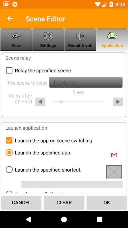 আপনি যখন উইজেটটি একবার বা বিজ্ঞপ্তি বারে ট্যাপ করেন, দৃশ্য নির্বাচন পপআপ মেনু এবং বিকল্প মেনু প্রদর্শিত হয়। বিকল্প মেনুতে পেন্সিল চিহ্নের [দৃশ্য সম্পাদনা] নির্বাচন করুন। এবং পপআপ মেনুতে একটি দৃশ্যে ট্যাপ করুন। তারপর দৃশ্য সম্পাদক প্রদর্শিত হয়. আপনি দৃশ্যের সেটিংস সম্পাদনা করতে পারেন।