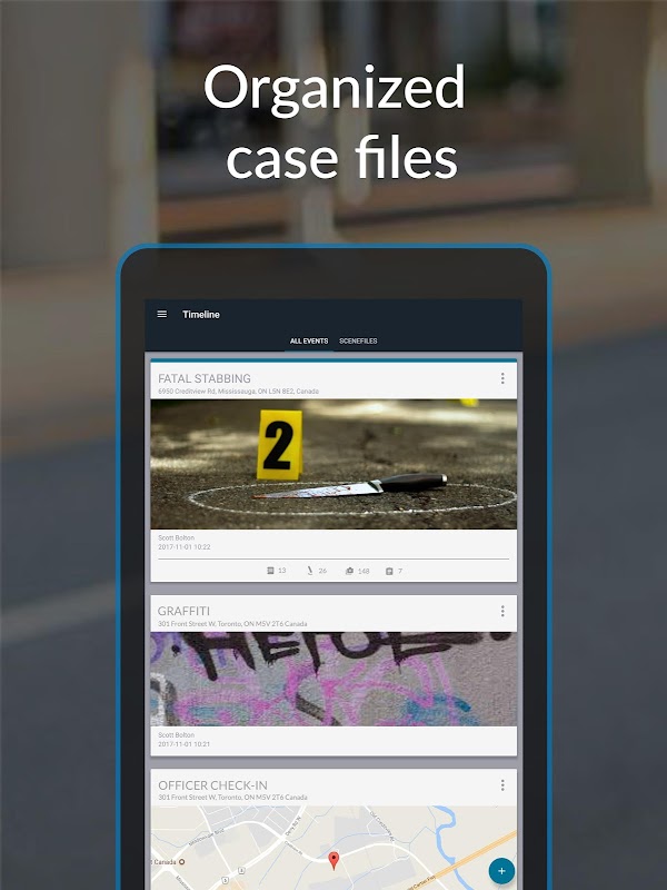 With SceneDoc, front-line officers can collect notes, issue citations and complete reports (FBR) using standard off-the-shelf smartphones & tablets. Benefits include clearer, faster & richer information, improved safety of officers in the field, and higher levels of visibility for command. SceneDoc is FirstNet Ready.