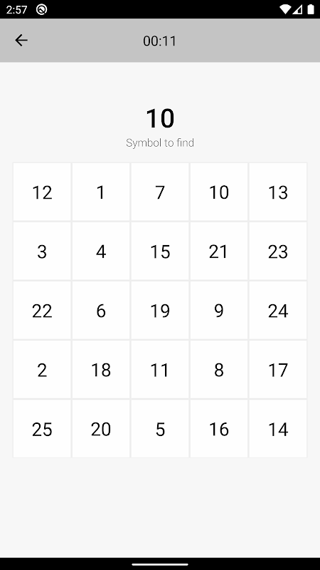 ▪ কেন্দ্র থেকে আপনার চোখ না সরিয়ে, আপনার পেরিফেরাল ভিশন ব্যবহার করে নির্বাচিত ক্রমে প্রতিটি সংখ্যা খুঁজুন