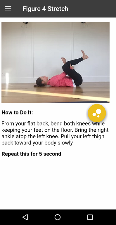 আপনি যদি আমাদের মোবাইল অ্যাপ্লিকেশনটিতে নিয়মিত অনুশীলন করেন তবে আপনার স্কটিকা ব্যথা হ্রাস পাবে। আপনার কেবল সপ্তাহে 20 মিনিটের 2 দিন এই আন্দোলনগুলি করতে হবে।