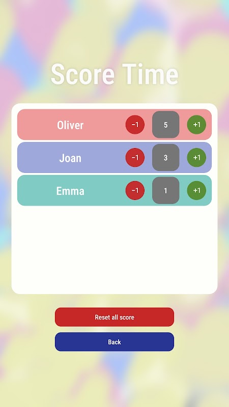মাত্র কয়েকটি ট্যাপ দিয়ে, আপনি নির্বাচিত প্লেয়ারের জন্য পয়েন্ট যোগ করতে পারেন এবং অ্যাপ্লিকেশনটি স্বয়ংক্রিয়ভাবে সামগ্রিক স্কোরবোর্ড আপডেট করবে। গেমের নিয়মগুলি যতই জটিল হোক না কেন, স্কোরিং সমাধানটি সহজ এবং স্বজ্ঞাত থাকে।