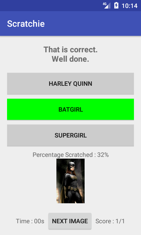 It’s quick and easy to play. No instructions required. Scratch away the blue and memorise the picture. You have less than 5 seconds. Then guess what it is from the three answers that are provided.