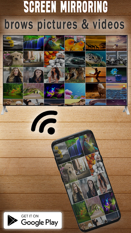 Screen Mirroring Share the second screen throw a wireless and Wi-Fi network and connect phone dongles with smart TV mirroring assistant. Now latest screen mirroring app is enabling you to make presentation, review photos, play music - audio, watch movie, Scanner on your browser, and play movies on the big screen